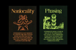 “Hyperobjects” is a term used by philosopher Timothy Morton to describe objects that are massively distributed in time and space relative to humans, such as climate change and styrofoam. I wanted to share Morton's writing in a visually exciting way that might engage a different audience. The deck is bound between two lasercut acrylic plates by an x-band and includes an introductory poster.
